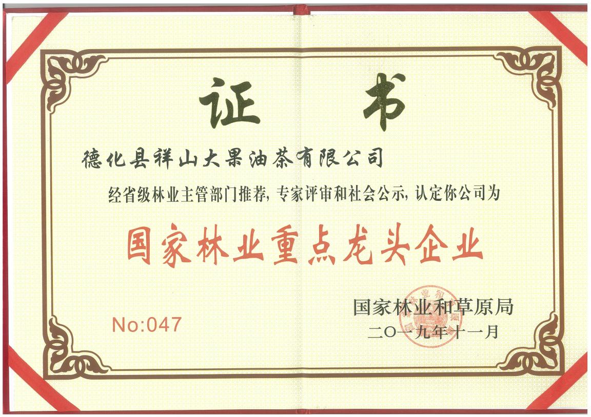 德化县祥山大果油茶有限公司是一家集种植、加工、科研为一体的油茶农业产业化省级重点龙头企业、林业产业化国家级龙头企业。公司拥有油茶林原料基地10200多亩,建有专业的油茶精制茶油生产线,专注茶油生产和研发十余年,深入发掘具有高附加值的茶油产品。